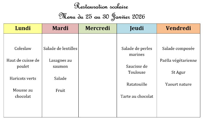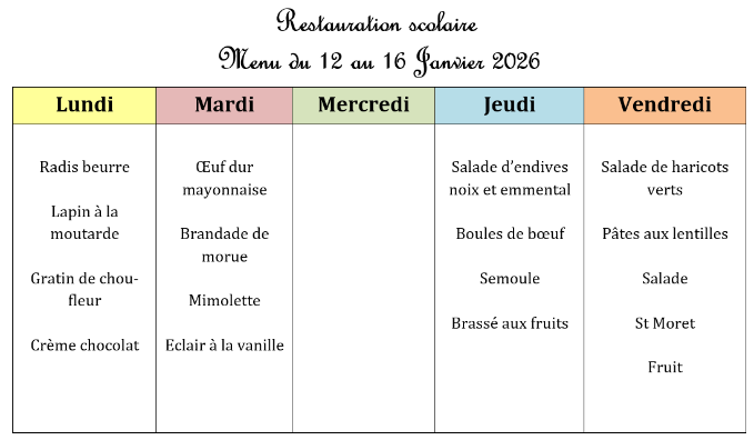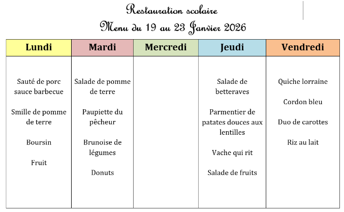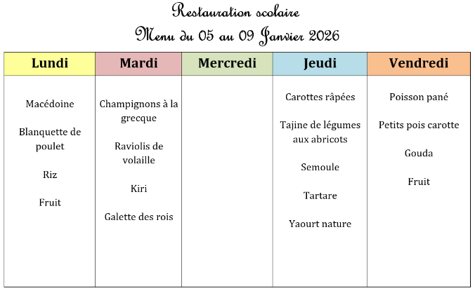 Menu JANVIER 2026