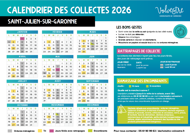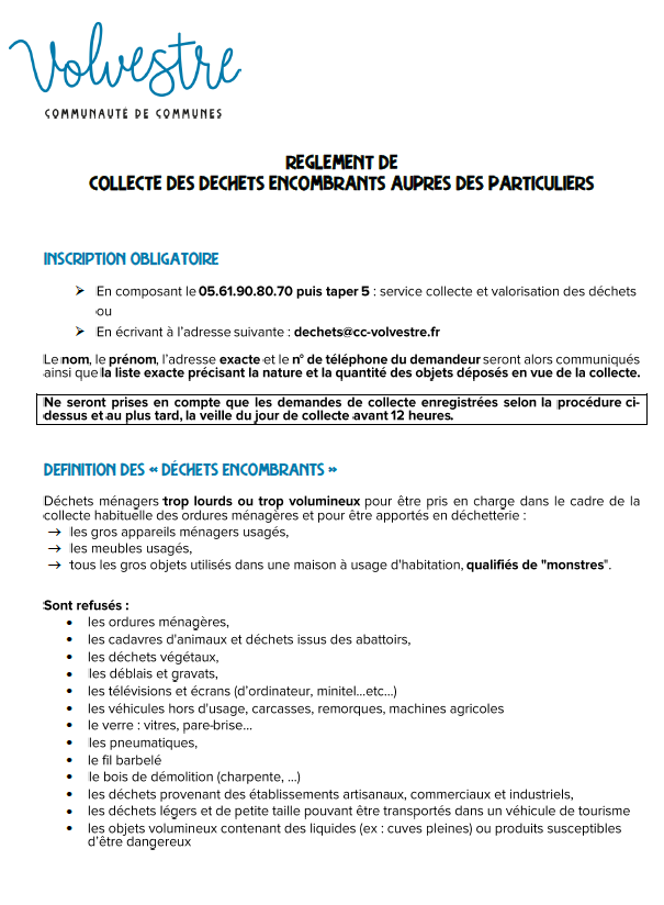 Pour toute question, contactez la Communauté de communes du Volvestre au 05 61 90 99 63 ou dechets @ cc-volvestre.fr.